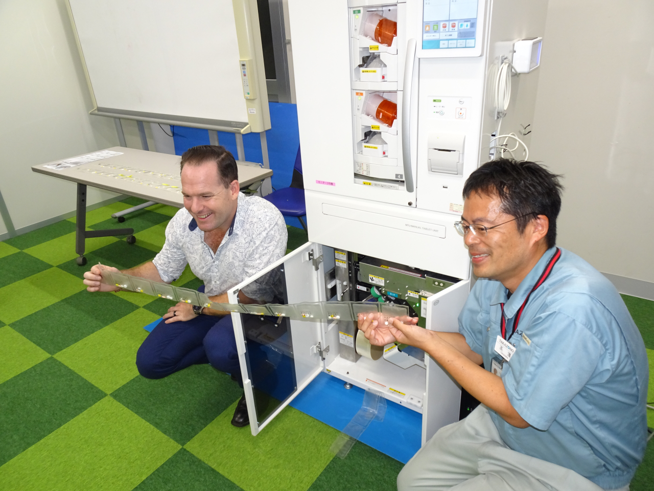 ジョン・レイブン市長は調剤機器・医療機器の説明を聞かれ卓越した技術力に感嘆されておられました。