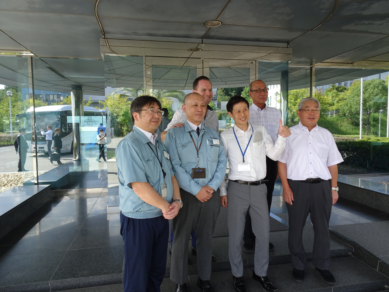 タカゾノ関係者の皆様と、まちづくり協議会の植田会長、能美相談役も一緒にお迎えし、名刺交換、歓迎の挨拶をし、工場見学に随行しました。