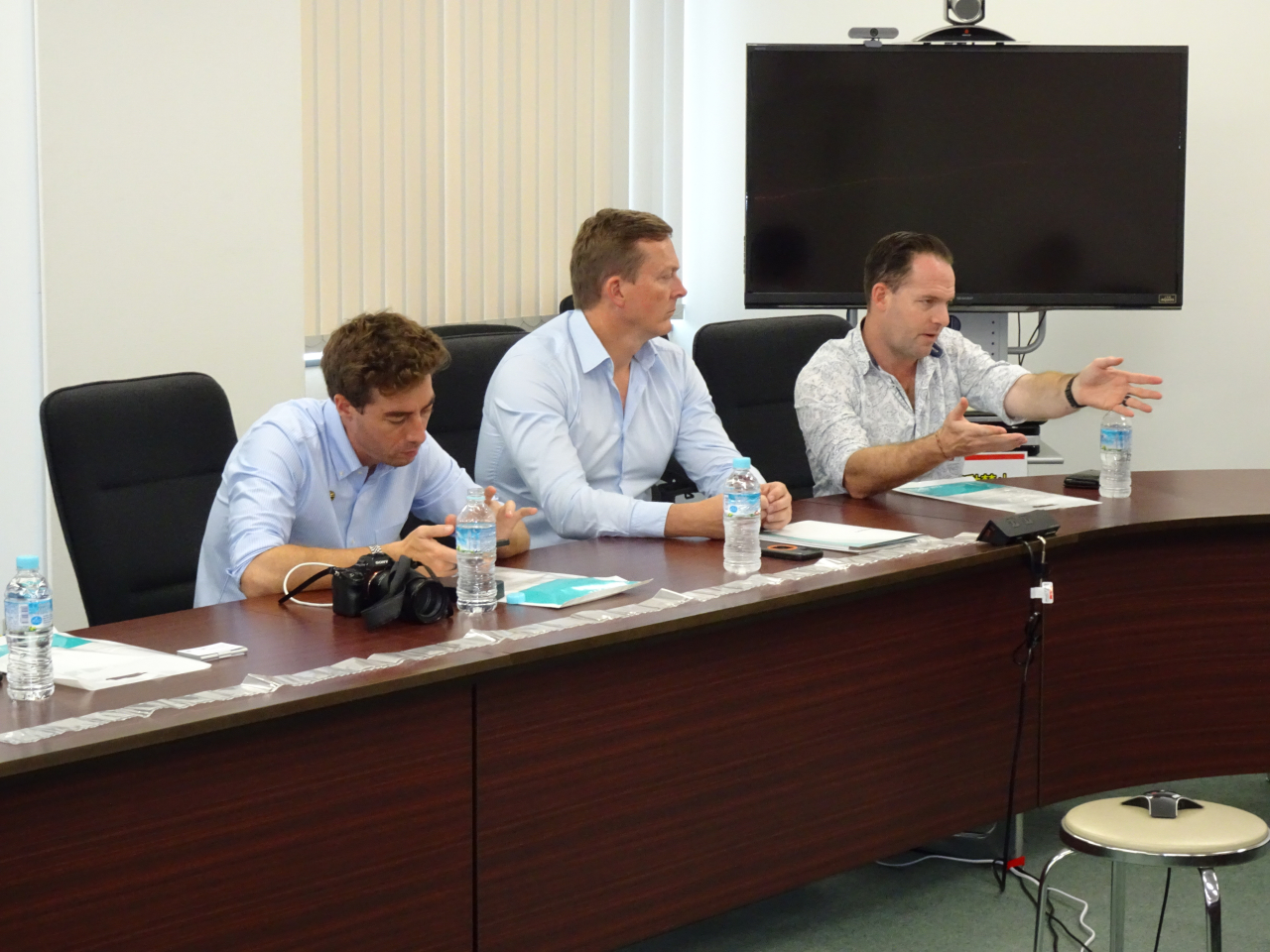 枚方市の海外友好都市オーストラリア・ローガン市のジョン・レイブン市長をはじめとする訪問団が津田サイエンスヒルズのタカゾノ研究開発センターに9月19日13時半すぎに到着されました。